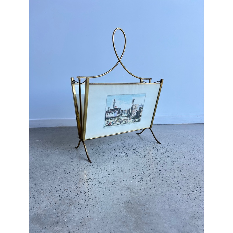 Magnificent magazine holder 1950s, very beautiful refined with glass in both sides, holding two different images of Florence city during the era.