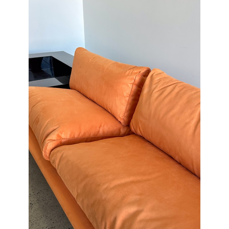 This rare and unique Arflex modular sofa from the 1980s represents the bold experimentation of Italian design in that decade. Characterised by its black lacquered frame and vivid orange cushions, the sofa is both a sculptural statement piece and a testament to Arflexs commitment to comfort and innovation.