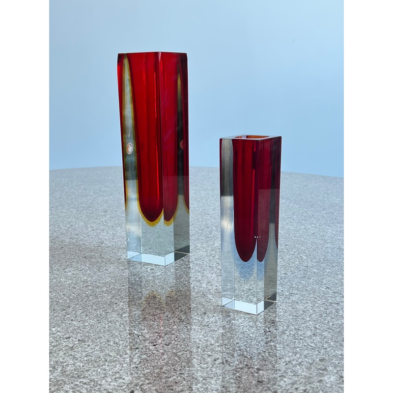 Murano sommerso vases are a type of handcrafted glass vase made using the sommerso technique, which involves layering different colors of glass to create a unique and striking effect. The sommerso technique is one of the signature techniques of Murano glassmaking, and has been used for centuries on the island of Murano.