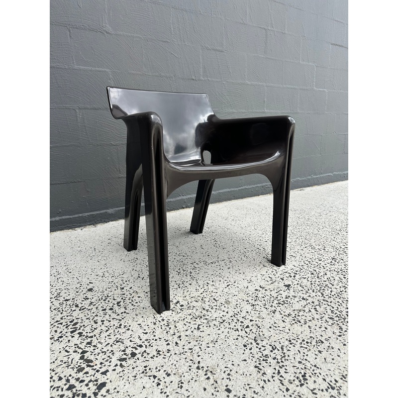 Crafted from fiberglass-reinforced polyester (GRP), the Gaud chair was among the first seating designs to fully exploit new industrial materials. The chairs organic lines echo the architectural language of Antoni Gaud, while its low-slung seat, integrated armrests, and enveloping backrest provide ergonomic comfort. The glossy black finish enhances its sculptural character, giving it a bold presence in any interior.