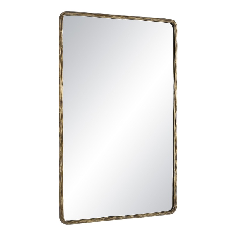 The Ivory wall art mirror is here to help fans of easy, contemporary style make a statement in any space. Graced with a dark antique brushed brass plated finish, this cast aluminum-framed mirror is ideal to hang horizontally or vertically anywhere people need to catch a glimpse of themselves. Great for bouncing light around the room, it makes any space look bigger and brighter. Slightly rounded corners soften the look of this rectangular mirror for a modern update to a classic shape. High-quality materials ensure the glass is distortion-free and the frame maintains its form for years to come.