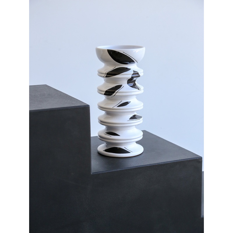 The vases rhythmic structure and layered silhouette give it a strong architectural presence. The contrasting black and white palette evokes balance and harmony, turning this piece into a striking contemporary art object that speaks to both modern and organic sensibilities.