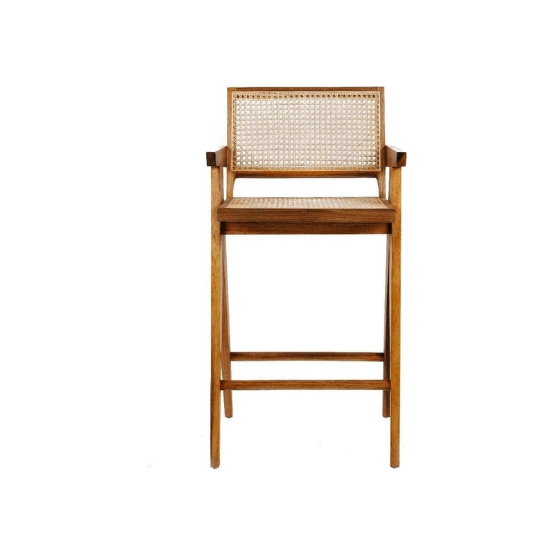 Our Jeanneret Barstool is inspired bySwiss architect Pierre Jeanneret’s mid-century modern 1950s design. Like the original, our contemporary reproductionhasV-shaped solid wood legs, and acane seat that provides plenty of comfort.