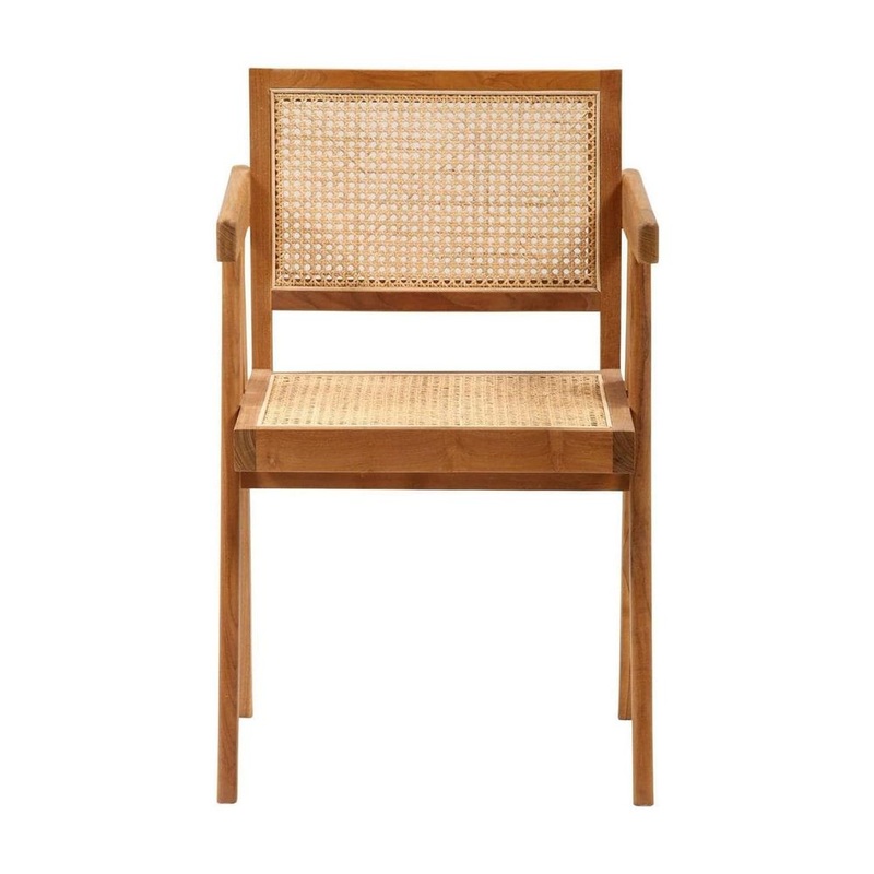 - Our Jeanneret Armchair is inspired bySwiss architect Pierre Jeanneret’s mid-century modern 1950s Chandigarh design. Like the original, our contemporary reproductionhasV-shaped solid wood legs, and acane seat that provides plenty of comfort.