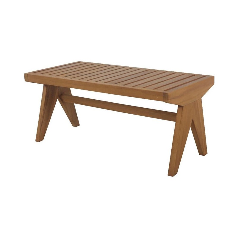 Our JeanneretSlat Benchis inspired bySwiss architect Pierre Jeanneret’s mid-century modern designs. Like the original, our contemporary reproductionhasV-shaped solid wood legs. This versatile bench can also serve as a coffee table!