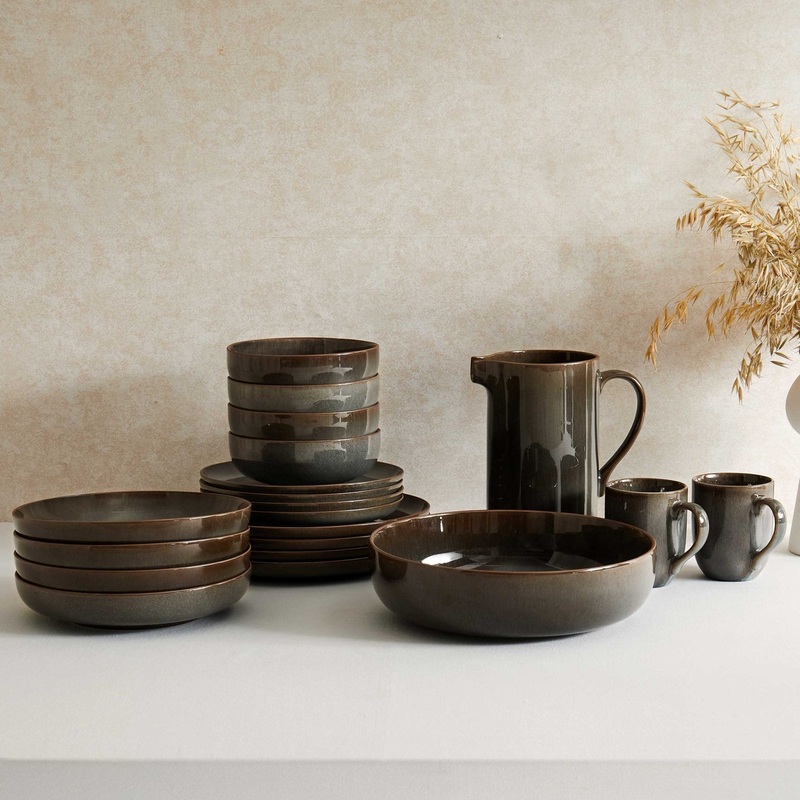 Crafted from high-quality stoneware with a rich reactive glaze, these plates bring effortless elegance to your dining table. Each piece is uniquely finished, making your set feel truly special. Available in Grey/Blue or Mocha, they pair beautifully with other pieces in the Juniper collection.