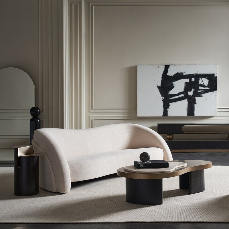 Featuring curved lines that beautifully lead the eye along its layered back and sides, the Kinetic Sofa exudes a calm and peaceful aura. Precision crafted with a subtly textured alabaster fabric, its sinuous silhouette provides both stylish and comfortable seating, complete with embracing arms and a delicately arched front that gives the illusion of floating. Perfect for creating a welcoming atmosphere for socializing and hosting, consider pairing this sofa to enhance the conversation space.