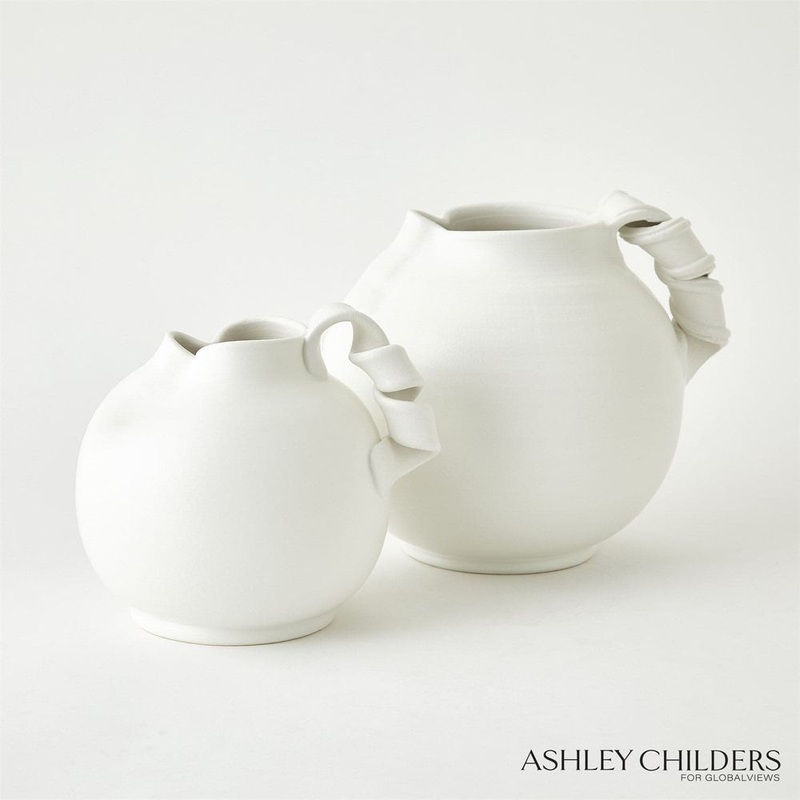 Only use with clear or light colored liquids as colored liquids can stain the interior of the pitcher due to the delicacy of the glaze.Handmade in Italy by master ceramic artisans, our Curt Pitchers are sculptural and unique. The spiral ribbon handles add unexpected interest to the rounded shape of the functional vessel.