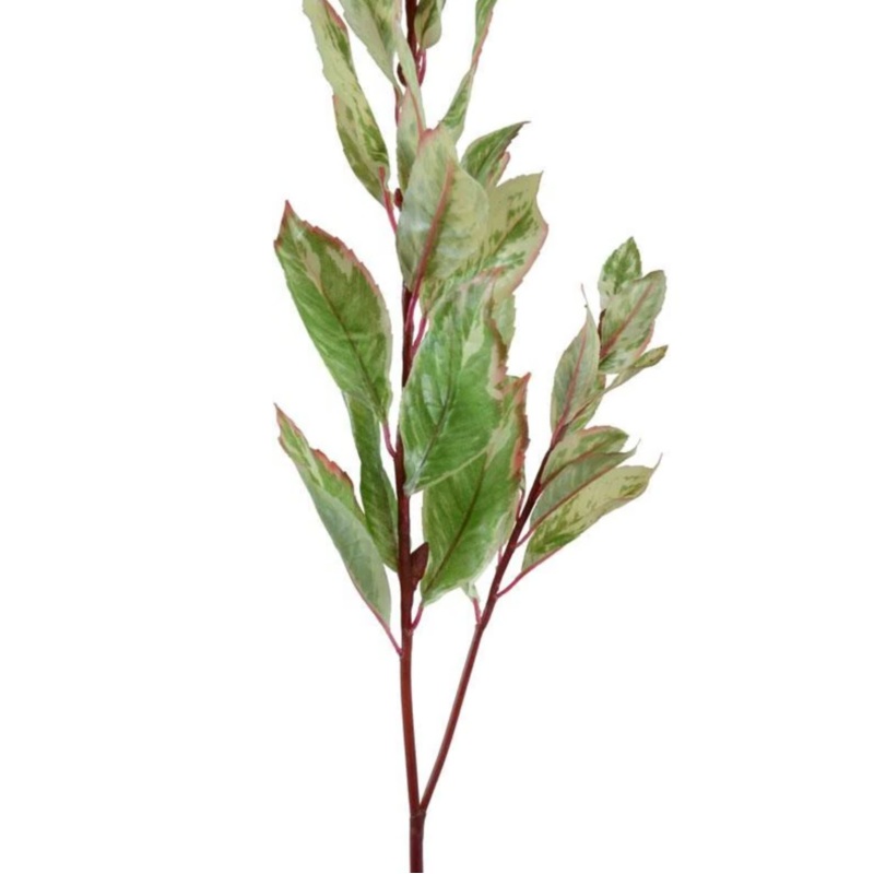 Enhance your arrangements with the lifelike beauty of our variegated laurel leaf spray. This 31″ stem features realistic red-tipped leaves in varying shades, adding color and filler to any indoor setting. It’s the perfect addition to any luxury dcor.