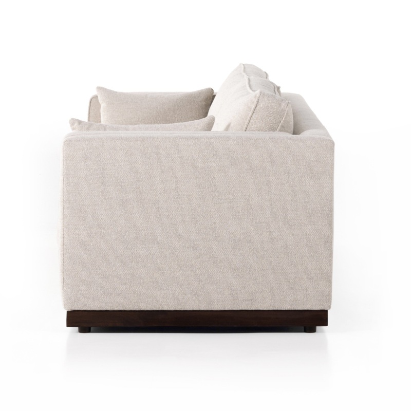 Traditional goes modern. Doubled-stacked arms and cushioning makes for a layered look with maximum comfort, while high-performance upholstery is great for everyday lounging. Finished in an auburn walnut, a 360 plinth-style base offers a touch of contrast. Performance fabrics are specially created to withstand spills, stains, high traffic and wear, ensuring long-term comfort and unmatched durability.