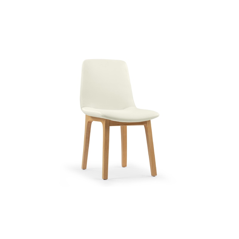LeBlanc – LeBlanc Side Chair, Eggshell Vegan Leather and Natural Ash