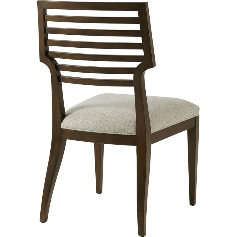 The Lido Dining Side Chair, crafted from Prima Vera veneer in our dark Bistre finish, featured a sophisticated slatted back design and tapered legs.