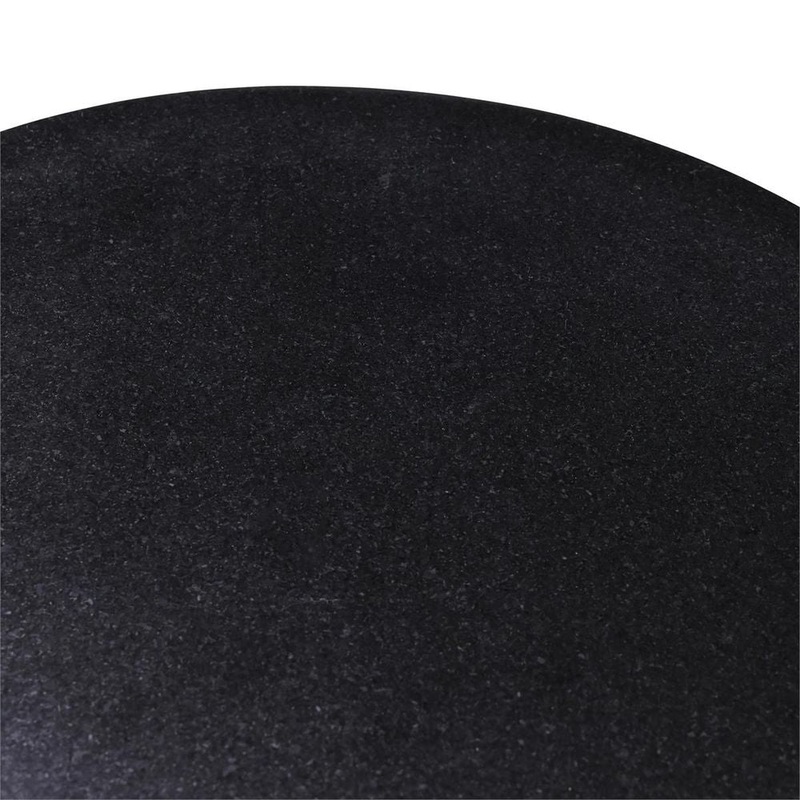 The Lilit Accent Table is a gorgeous home accent crafted from Antique Brass, featuring stylish grooves that elegantly taper into a slender rod that supports a rounded black marble tabletop. This contemporary design gracefully sits upon a matching marble base, completing the look.