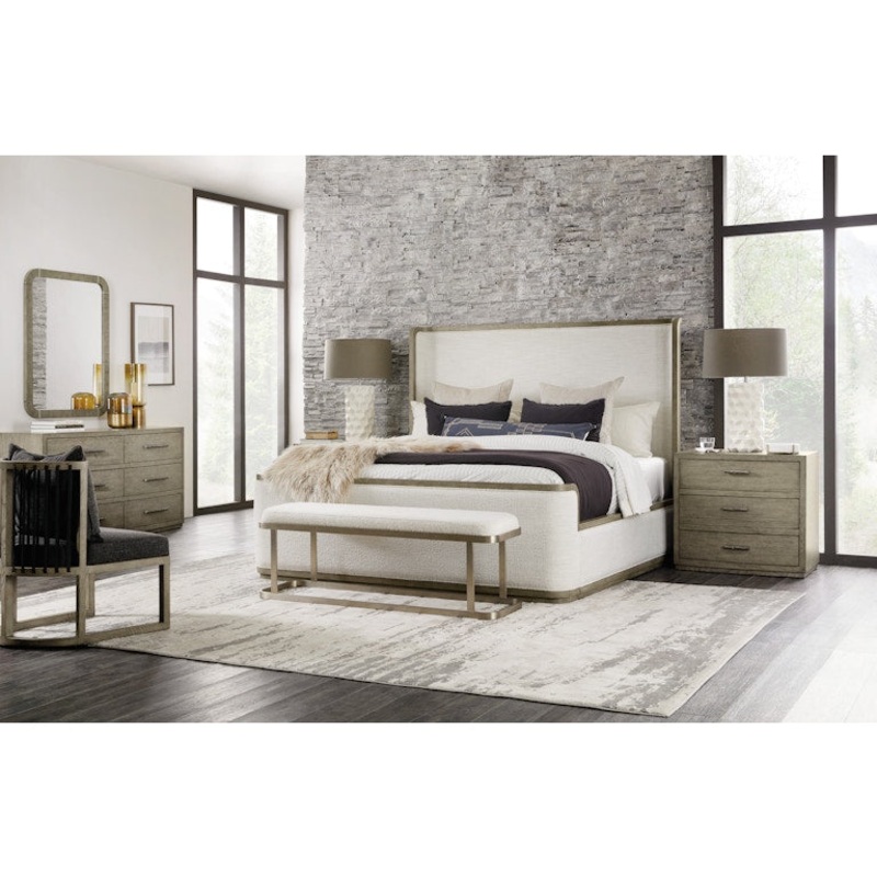 With a rustic weathered finish and clean modern lines, the Ashford Nightstand has three self-closing drawers and a double USB charging post on the back, along with a cord clip. Crafted of Oak Veneers, the nightstand is finished in Mink, a soft smoked gray color, and accented with textured metal bar pulls in an antique pewter finish for an organic touch. Capturing the essence of natures organic color palette and the aura of a rustic mountain cottage, Hooker Furniture introduces the Linville Falls collection. The whole home collection is designed for younger consumers looking for casual and contemporary furniture. Characterized by its rustic, weathered finish and clean lines paired with organic grain patterns, Linville Falls is constructed with split oak solids and veneers and has an overall organic aesthetic. It is featured in a soft Smoked Gray finish mixed with a Charred Black finish that is achieved through Shou Sugi Ban, a Japanese technique that creates an elegant burnt wood look. Its moderate scaling and fresh silhouettes offer a refreshing juxtaposition mixing old with new.