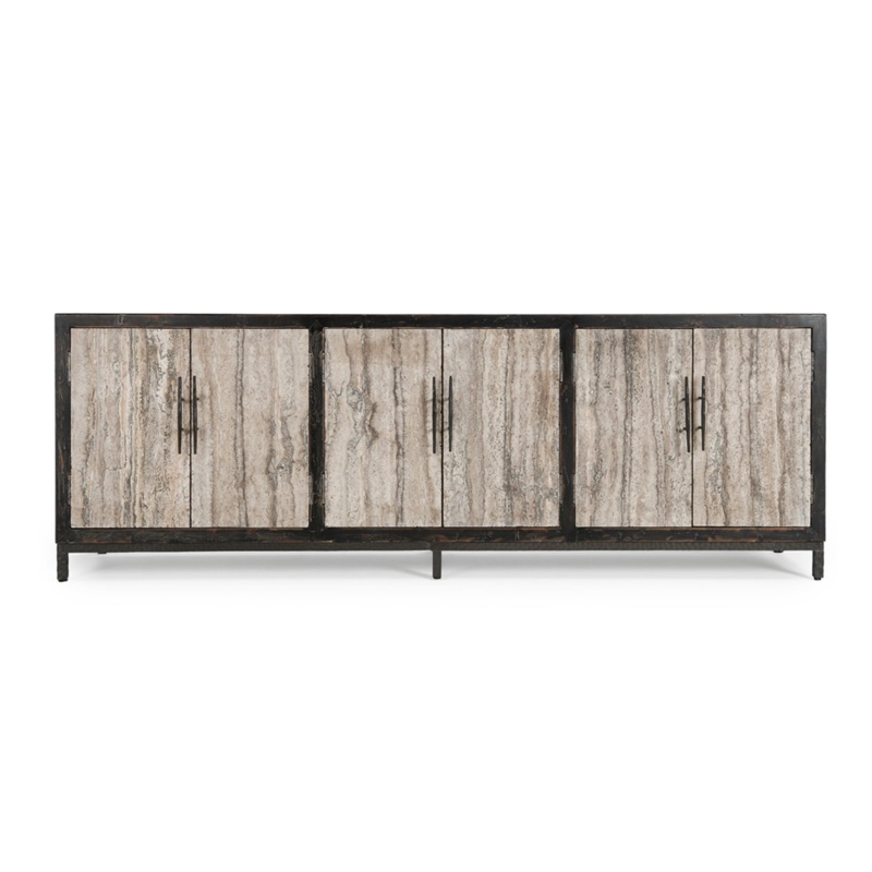 Transform your space with the sophisticated elegance of the Lisbon Reclaimed Pine 6Dr Cabinet. Crafted with a solid wood construction, this cabinet boasts a distressed finish and features removable shelves, perfect for displaying your personal items. The iron base with an antique finish adds a touch of luxury to this one-of-a-kind piece.