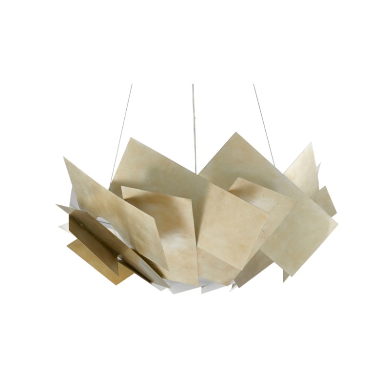 Introducing our Artiste Chandelier – a powerful and edgy composition crafted from wrought iron panels in a sleek silver leaf finish. The unique arrangement of these simple metal sheets creates a sophisticated and exclusive look. With an opaque acrylic diffuser, the three-light fixture emits a beautifully softened glow. Elevate your space with this elegant and tasteful piece.
