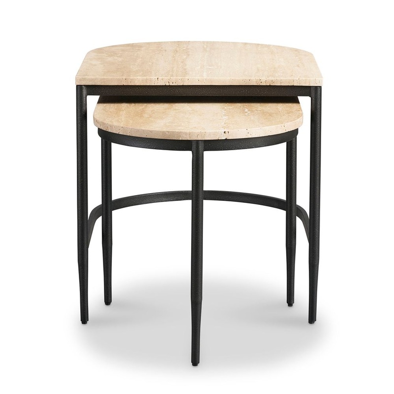 The Elodie Nesting Tables blend sophisticated materials and practical design to deliver both style and flexibility. With elegant travertine stone tops and a sleek metal base, this nesting set adds texture, warmth, and visual interest to living spaces.