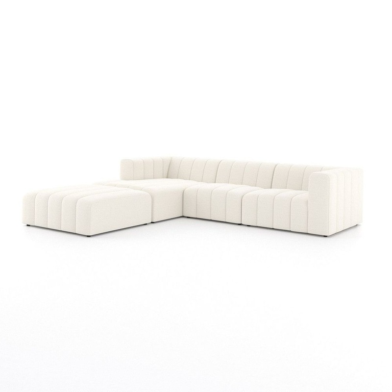 - Description: Wide, vertical channels and low styling speaks to modish Italian influence of this three-piece left arm facing sectional, with a soft covering in an invitingly neutral cream.