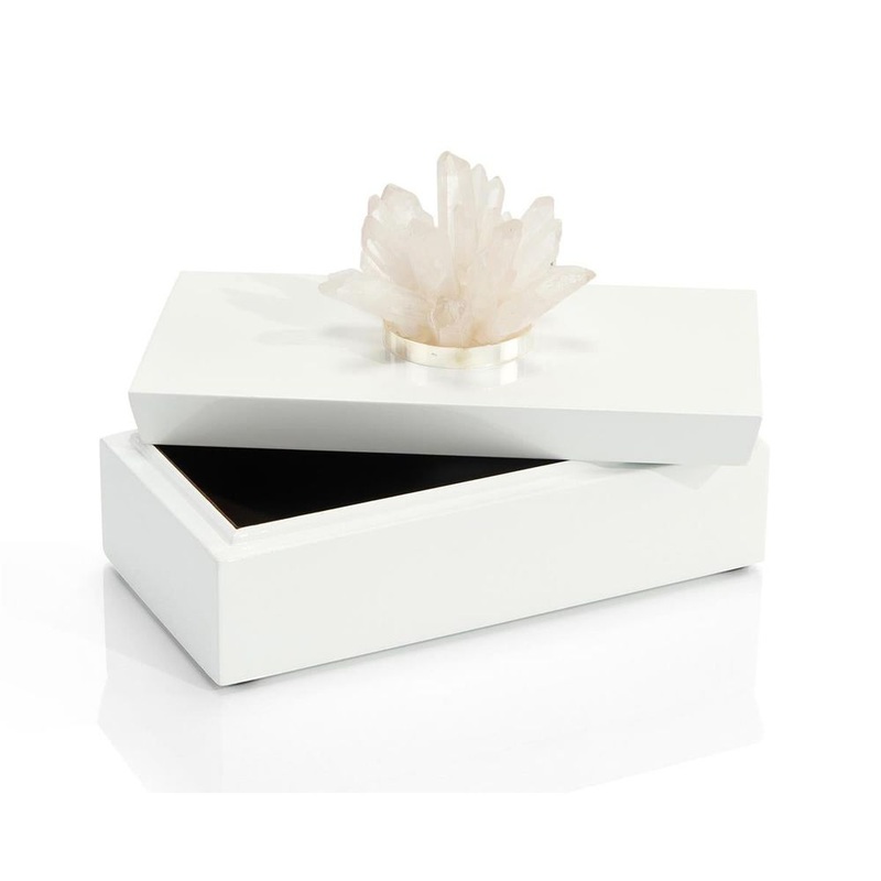 The sleek modern llines of this box with the quartz embellishment is a great solution for storing those unsightly TV remotes.