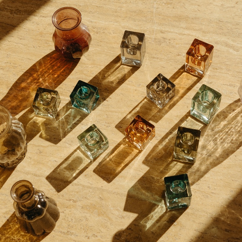 Made from colorful painted glass, the Luca Candle Holder brings interest and playful reflections to summertime tablescapes. Mix and match colors and sizes to draw the eye down the table and enliven your settings.