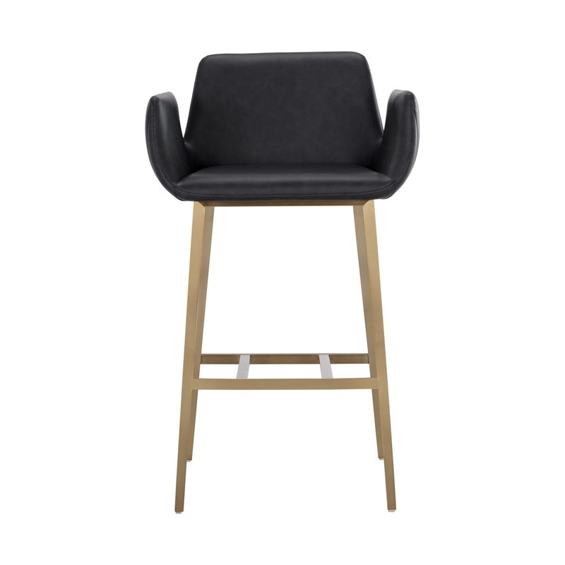 Description: With its stunning scooped design, the Lucano Barstool is an impressive addition to any dining space. Features vertical channel tufting on exterior seat. Stocked in smooth bravo black faux leather and completed with gold stainless steel legs. Handle With Care: This design has been crafted with faux leather. Faux leather is manufactured to reflect the natural characteristics of leather; as such, colour variations, markings, wrinkles, grooves, and light scratches are appreciated characteristics. No two pieces will be alike. Visit our Product Care page for more information on how to ensure the lasting beauty of this piece.