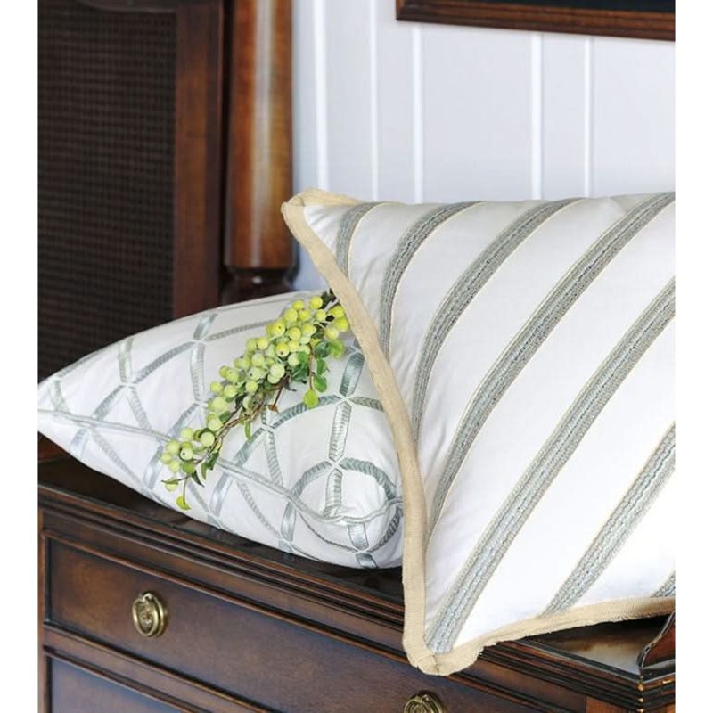 - Decorative pillow with diagonal trim application on face