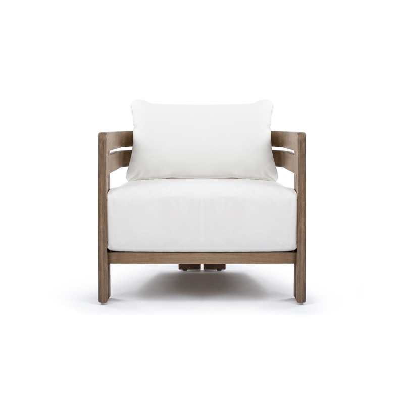 Lusso – Lusso Outdoor Lounge Chair, Weathered Teak with White Cushions