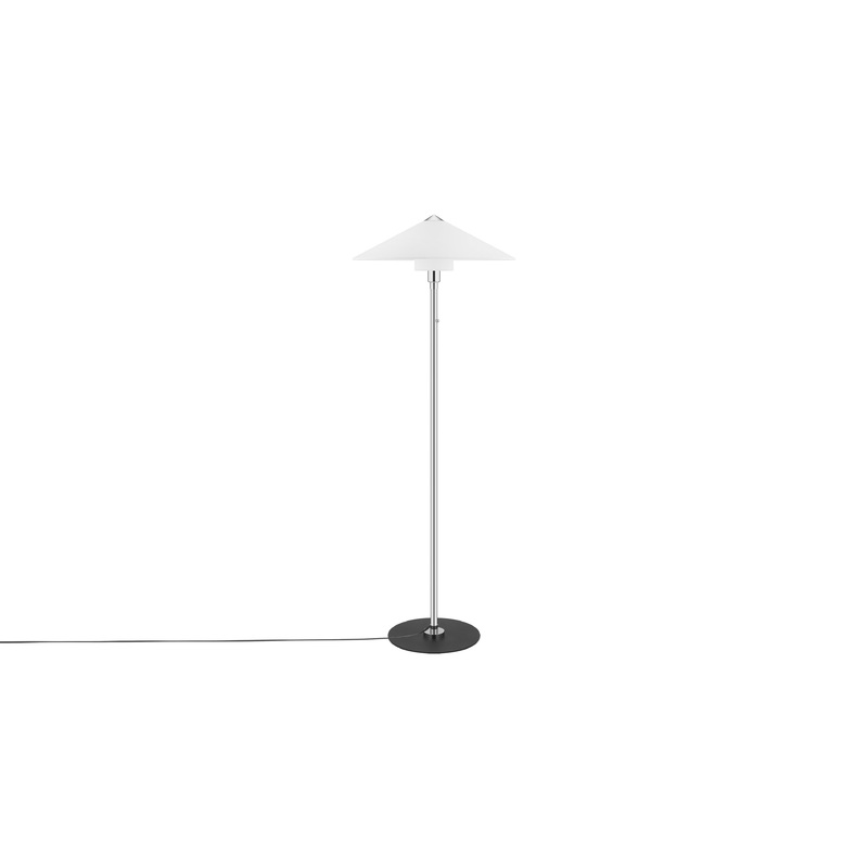 The Lutz Floor Lamp combines classic style with modern convenience. Its sleek chrome-finished metal body complements a traditional-shaped, white fabric shade, making it a versatile addition to any room. With its compact footprint, this lamp is ideal for small spaces, delivering style without taking up much room.
