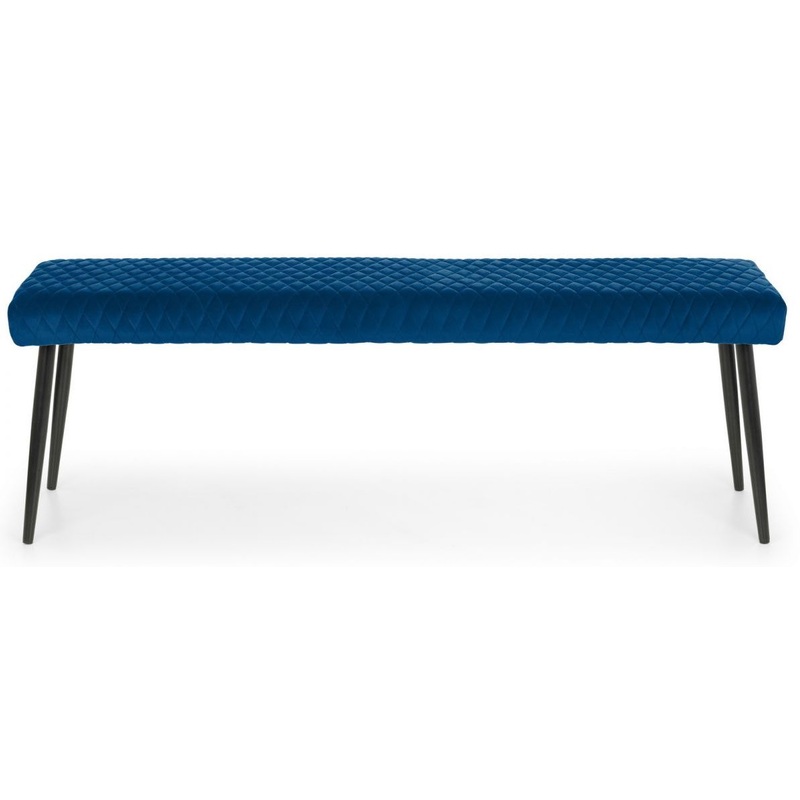 The LuxeLowBench offers a classic style with a modern twist, beautifully upholstered in a modernblue velvet with a luxuriant quilted finish offering depth and texture. This bench is perfect use for dining or a striking focal point for any room.