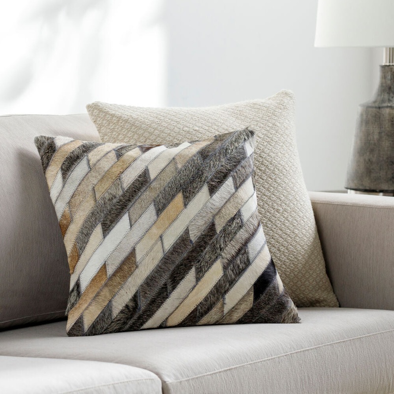 Bring a rustic yet modern feel to any room with the Lycaon Pillow Cover. This stylish pillow cover is handcrafted from Hair On Hide and Microsuede for a unique, textured look. Featuring leather construction for increased durability, this pillow cover will last through years of use. Made in India, it’s easy to care for by spot cleaning only. Add the perfect finishing touch to your living space with the Lycaon Pillow Cover!