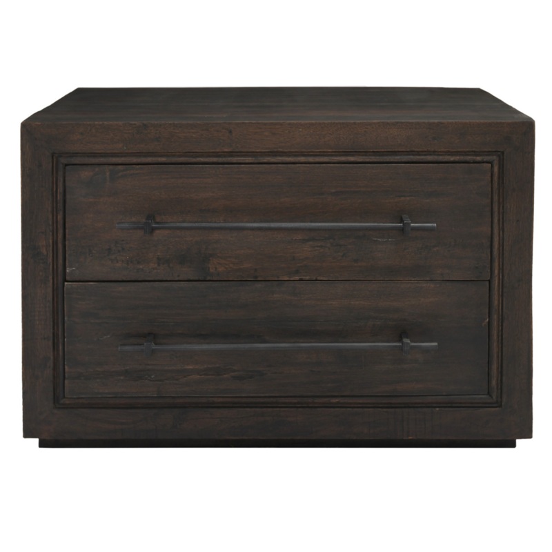 Elevate your bedroom with the Magdalena Nightstand. Hand-finished and distressed for a one-of-a-kind piece. Keep your space organized with two spacious drawers. Perfect for storing your personal belongings. A touch of luxury for your bedside.