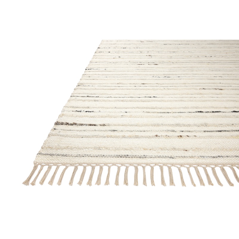 The Nico Collection by Joanna Gaines x Loloi is a dynamic jute rug with raised, alternating lines of wool and cotton, finished with playful fringe. Neutral, undyed tones give the rug an organic modern feel that can ground living rooms, bedrooms, dining rooms, and more. Hand-loomed of jute, cotton, and wool in India and GoodWeave-certified, ensuring our commitment to ethical production and the support of weavers communities. SPECS: -Pile Height: 0.5 -Fiber: Jute | Cotton | Wool | Polyester | Other Fibers -Construction: Hand Loomed -Country of Origin: India -Care: Clean spills immediately by blotting with a clean, white dry sponge or cloth. Professional cleaning recommended. Appropriate rug pad is highly recommended on all surfaces to prevent slipping, add cushion, and improve durability. For vacuuming, use a vacuum cleaner without beater bar or one where you can set the bar to the highest pile setting. If your vacuum has variable power settings, set on low. Vacuum full length of the rug, turn and repeat to the next area, rather than back and forth motion.