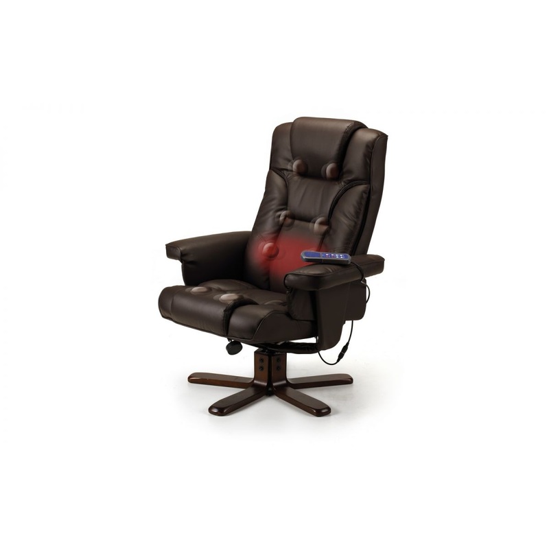 The Malmo Reclining Swivel Chair and Stool, upholstered in a soft touch faux leather with a walnut colour laminated base is now available with an added 8 Point Massage Unit and Lumbar Heated Pad. This chairs offers the ultimate in complete sitting comfort and relaxation.