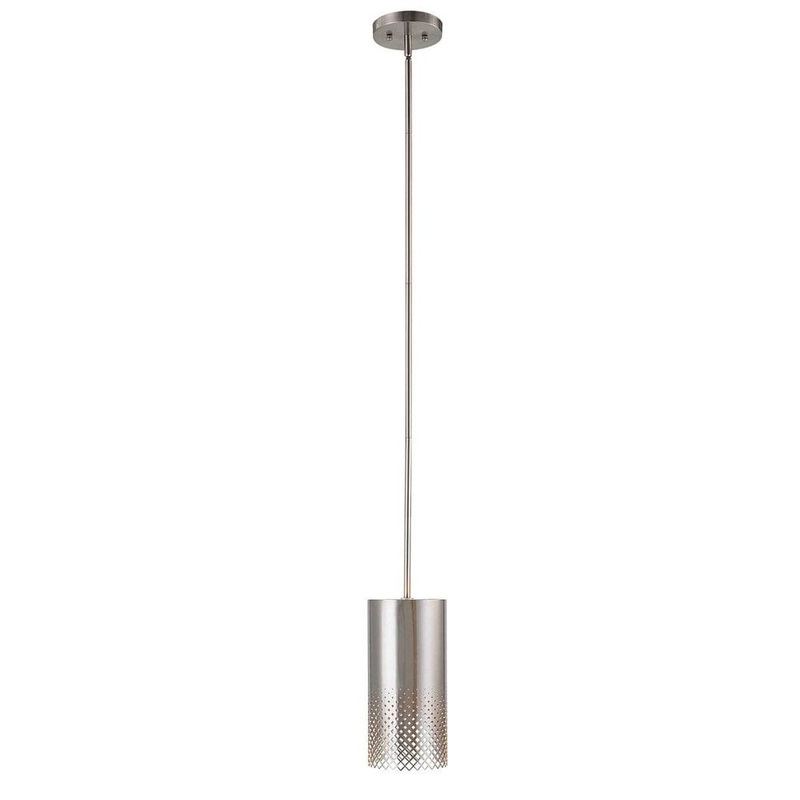 Clean cylinder shaped satin nickel pendant with a unique laser cut ombre patterned edge detail is a perfect fit with any modern decor look. 1-100 watt max Edison socket. Bulb not included. Supplied with 15′ wire, 3-12″ stems and 1-6″ stems for adjustable installation.