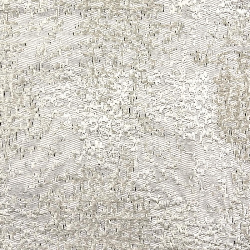 Abstract embroidery glistens and catches light. Lightly padded, reverses to Natural Linen.