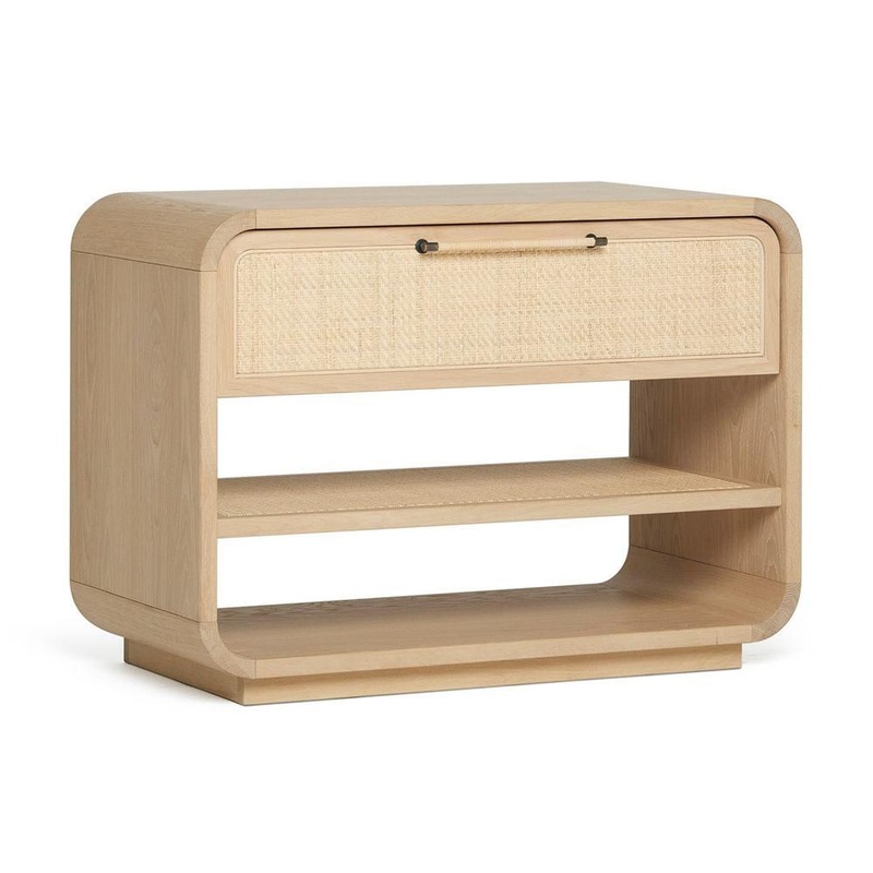 With the pairing of saddle-finished oak and blonde rattan, the Marsh Bedside