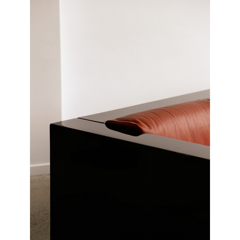 The Saratoga series, first created in 1964, is defined by its geometric volumes, lacquered wood frames, and box-like silhouette. Upholstered in supple leather, the pieces balance architectural clarity with comfort. The strong interplay between glossy lacquered surfaces and soft cushions gives the collection a refined presence. This set offers a bold aesthetic statement, making it ideal for modernist interiors, contemporary living rooms, or design-focused spaces.