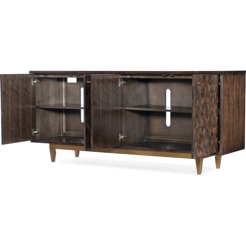 Warm and welcoming and crafted of Walnut Veneers with a timeless marquetry pattern, the Alpine Four-Door Credenza has 4 doors with one adjustable shelf behind each pair of doors. Media-ready, the credenza has a ventilated back panel. Come closer to Melange, and you will discover something unexpected, an eclectic blending of colors, textures and materials in a vibrant collection of one-of-a-kind artistic pieces.