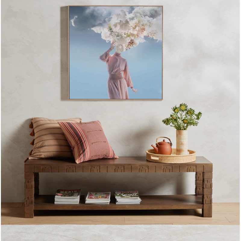 Head in the clouds Speaking to her background in collage and photo-manipulation, Ukrainian photographer Elena Vizerskaya’s uniquely whimsical work is a high-definition metal print produced on ChromaLuxe using dye sublimation print technology. Float-mounted in a vertical grain floater frame of white-finished American oak for a modern, museum-quality look. Image courtesy of Getty Images.
