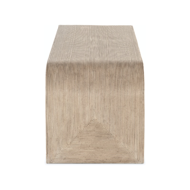Infuse your decor with timeless elegance and style with the Merchant’s Exchange Bench. Featuring an arched rectangular frame and a light natural wood finish, this globally-sourced bench showcases a ridged design and a triangle motif on each side for a captivating look. Crafted from quality materials, including cast metals, bone inlay, travertine, and wood veneers, this bench is sure to bring a tranquil air to any space.