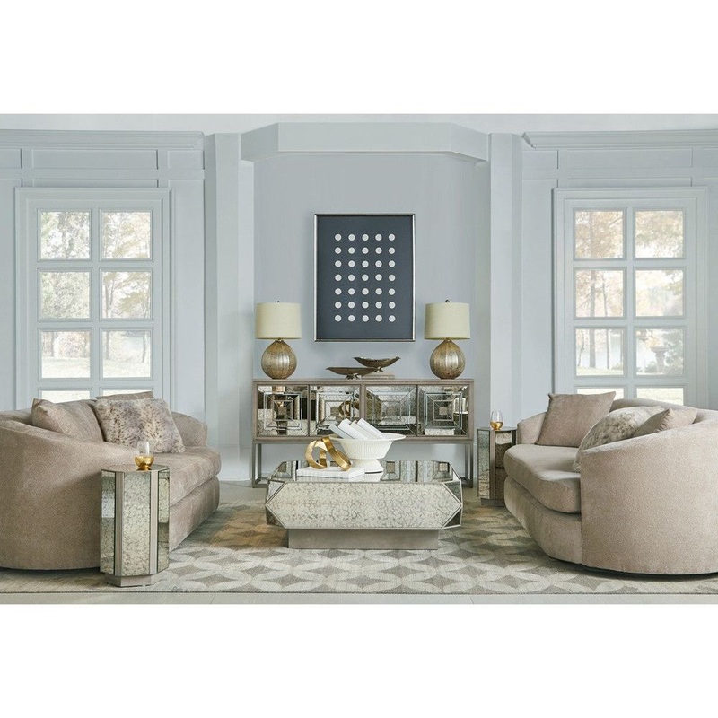 The classic romance of Paris enters the 21st century with this strikingly reflective cocktail table. Its square form is punctuated by faceted corners in triangular shapes, showcasing the beauty of antiqued mirror panes. Modern chic meets timeless warmth in this stunning table, sure to be the shining jewel of any living space.