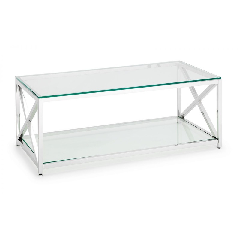The lavish Miami occasional collection will add a touch of class and luxury to any home. Taking inspiration from the Art Deco period, the Miami features a striking cross frame design. Crafted from a chrome frame and tempered glass, this coffee table provides a shelf underneath for additional storage.