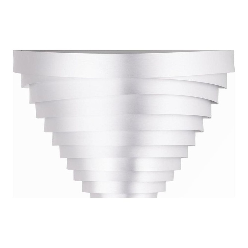 This subtle yet eye-catching wall lamp will light up any contemporary or transitional style space in style. Crafted from spun aluminum this piece is made up of numerous rounded layers of metal sheets that overlap to create a cone-like shape. The light from the standard 60 watt bulb inside shines through the layers to provide ambient lighting and fill your space with a warm glow.