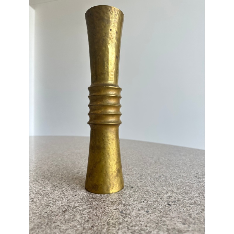 Perfect as a standalone sculptural piece or as a vessel for minimal floral arrangements, this mid-century brass vasebrings warmth and elegance to any space. Its natural patina enhances the vintage charm and authenticity of the design.