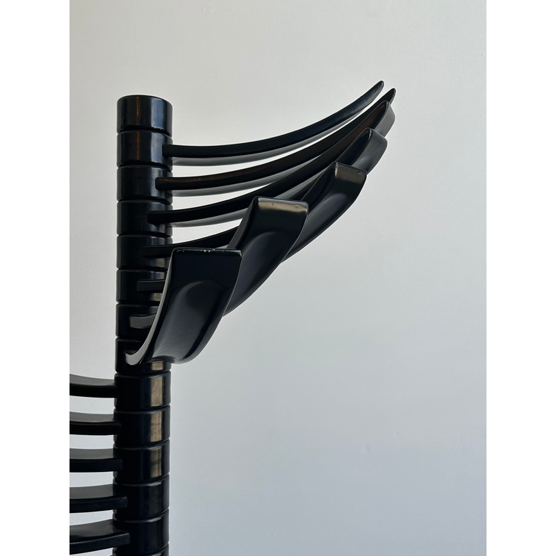 The Renna coat hanger by Bruce Tippet for Gavina (later produced by Knoll International) is a striking sculptural coat stand from the 1970s. Its vertical column with crescent-shaped hooks and tripod base makes it both functional and highly decorative. A collectible example of mid-century Italian design.