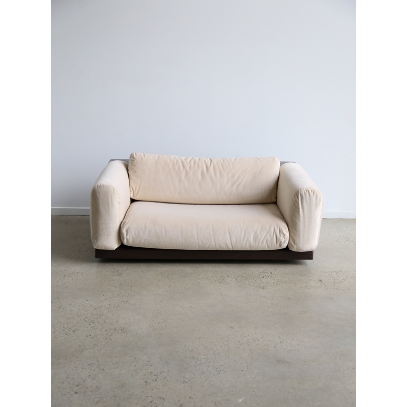 These sofas balance comfort with architectural clarity, reflecting Cini Boeris celebrated ability to merge softness and structure. With the original hidden wheels, they can be moved effortlessly to reconfigure a space, making them ideal for both residential and gallery interiors. The rear shelving system offers an innovative way to display books, decorative objects, or even cocktails, transforming the back of the sofa into a functional design element.