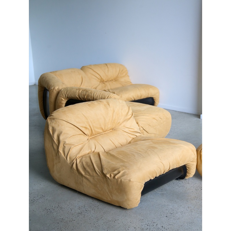 Created in the 1960s, this design reflects Italys embrace of avant-garde forms and innovative materials. Built in ABS and polyurethane foam, the structure embodies the modernist exploration of synthetics, while Diego Mattus vision ensured a balance between functionality and sculptural beauty. The camel suede upholstery not only elevates its luxury appeal but also accentuates its organic contours, marking it as an exceptionally rare collectors piece.