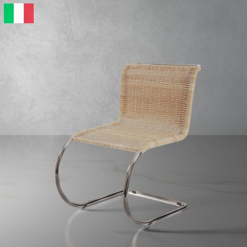 This Chair was originally designed by Mies van Der Rohe at the Bauhaus in 1927; the wicker-work on this chair was created by Lilly Reich, assistant to Mies.This reproduction of Mies van der Rohe’sCantilever Cane Armchair is carefully handcrafted in Italy.