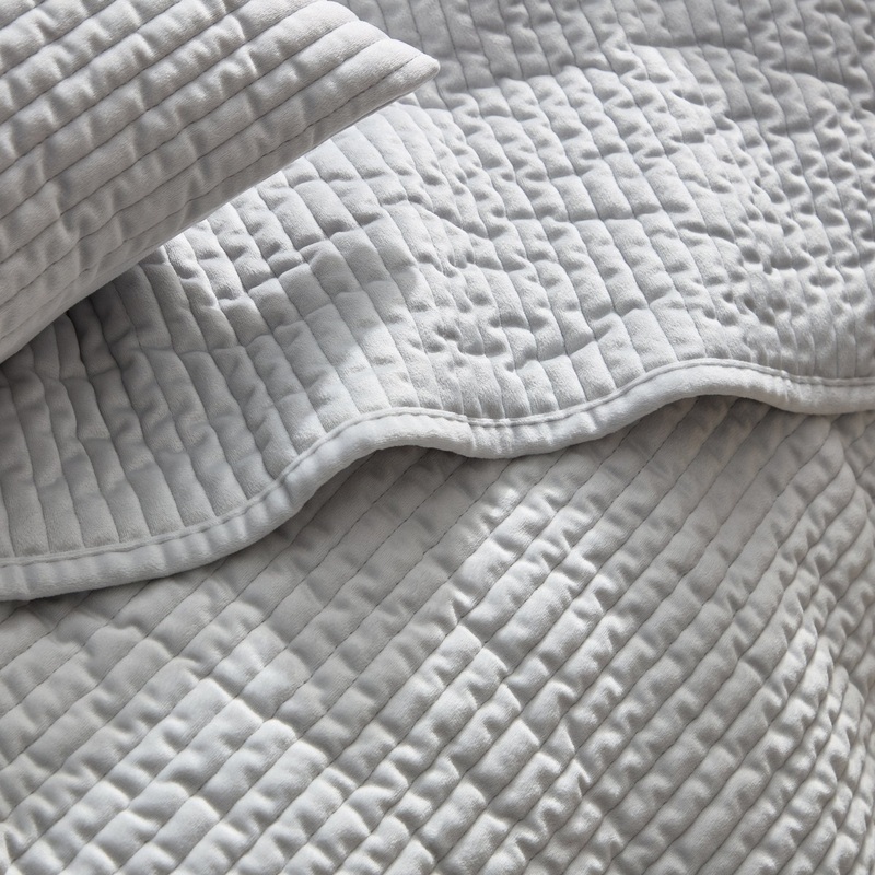 When styled on your bed, the Milan Bedspread is the perfect place to curl up with a book or enjoy an afternoon snooze. Made with a premium textured matte velvet fabric in silver, it also features a stylish ribbed velvet design for a beautifully soft to the touch feel.