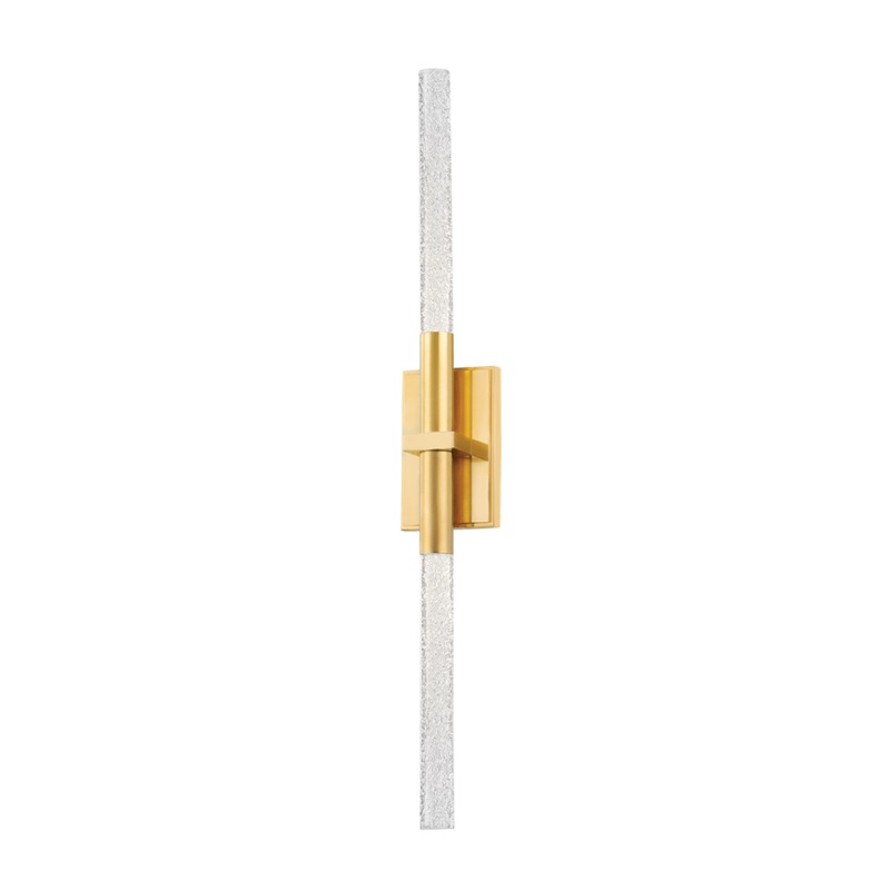 Style meets innovation in the sleek Millerton sconce. Solid glass rods are perfectly imperfect, with seedy bubbles and chill marks lit from the ends. The resulting visual effect is a gradual wash of light that emanates both upwards and downwards. Equipped with energy-efficient LED lighting, Millerton is available in an Aged Brass or Brushed Bronze finish.